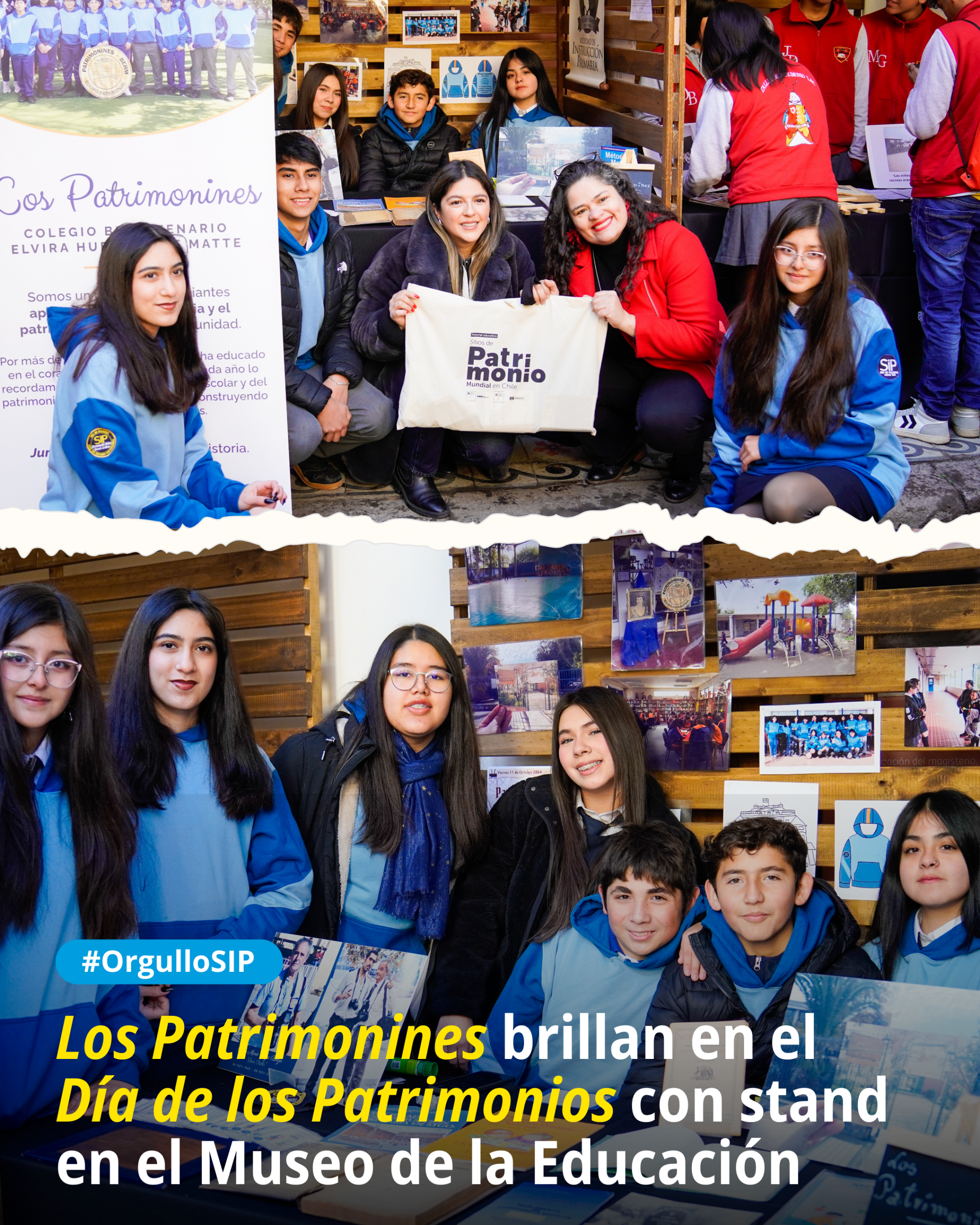 En el marco del Día de los Patrimonios de Niñas, Niños y Adolescentes, los estudiantes del Colegio Bicentenario Elvira Hurtado de Matte presentaron su stand en el Museo de la Educación Gabriela Mistral, junto a otros 17 colegios de Santiago, Buin y La Serena, compartiendo aprendizajes sobre identidad y patrimonio cultural. Celebramos el a los 18 integrantes del Taller de Patrimonio y a su profesora Viviana Albornoz por representar con entusiasmo a su colegio y a toda la SIP.