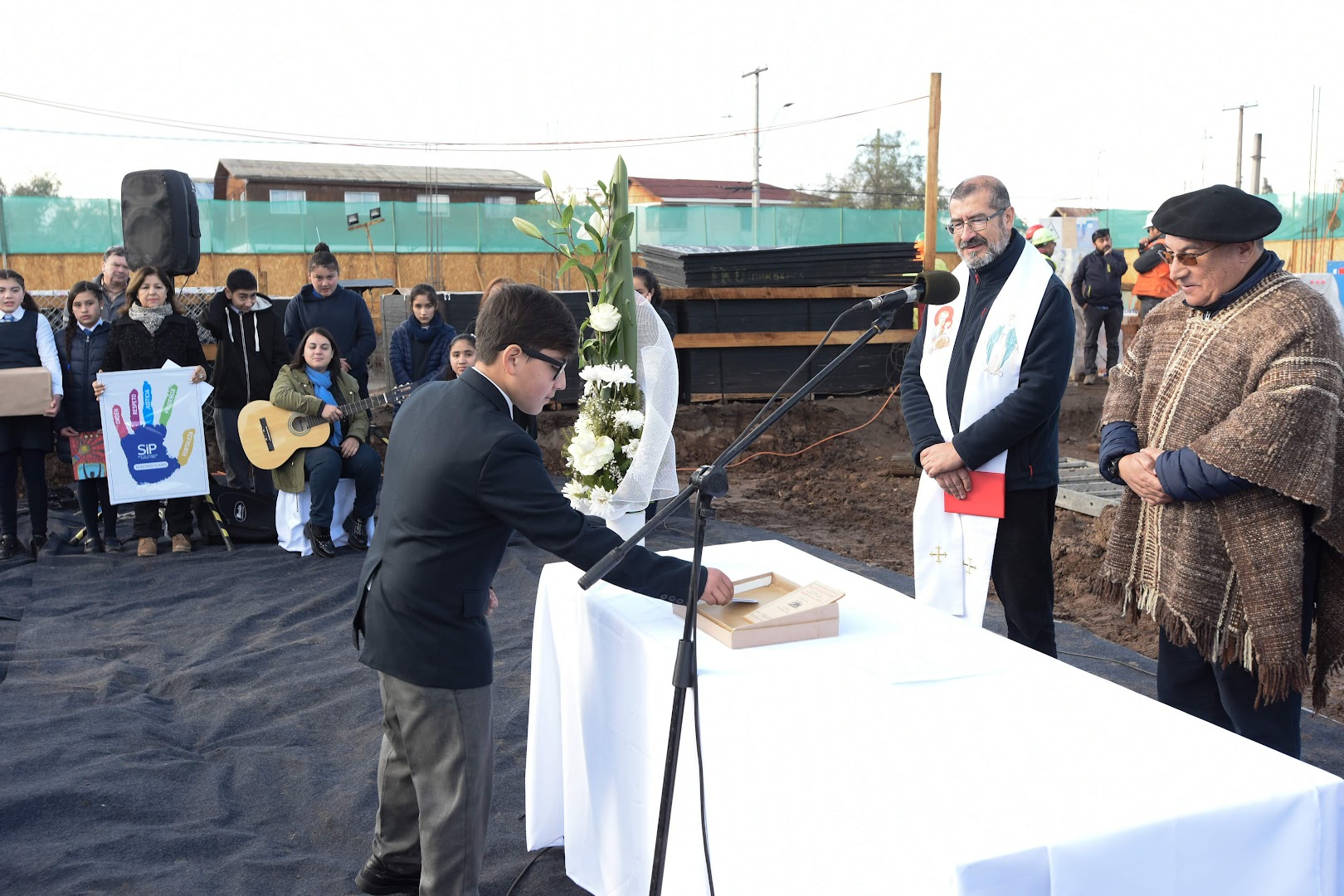El Colegio Arturo Matte Larraín, ubicado en La Bandera, se encuentra en pleno proceso de construcción del edificio que albergará a los alumnos de Enseñanza Media, desde el año 2020. Para dar el correcto arranque al proceso de construcción, se realizó una ceremonia simbólica de colocación de la Primera Piedra en la obra, que contó con la bendición del padre Maximiliano Núñez.