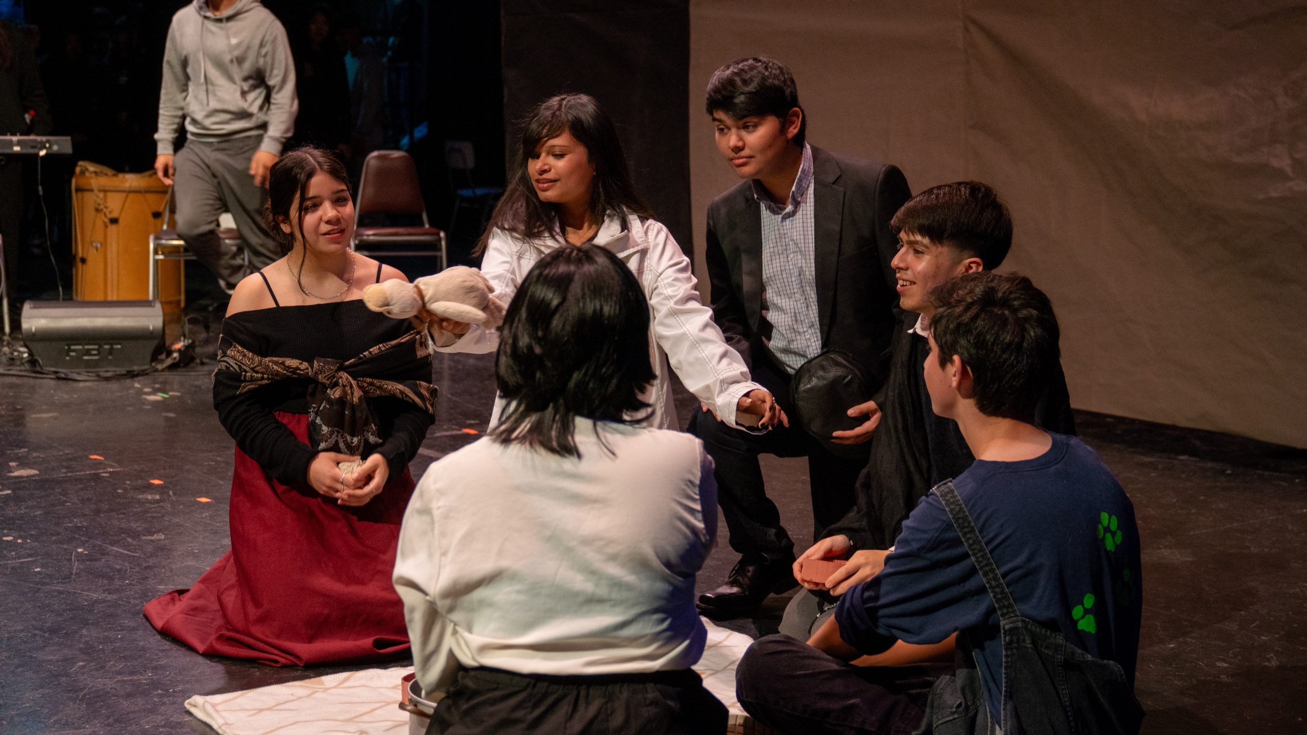 A través de un espectáculo dividido en distintos actos (cada uno inspirado en la temática anual de Artes, “Tejiendo vínculos: experiencias que construyen comunidad”), los y las estudiantes presentaron cuadros vivientes, interpretaciones musicales, danzas y lecturas de ensayos, acompañados por la instrumentación del Trío Le Voyage.